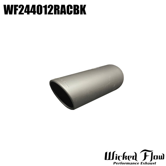 WF244012RACBK - EXHAUST TIP - 2.25" Inlet 12" Length - ROLLED ANGLE CUT POWDERCOATED